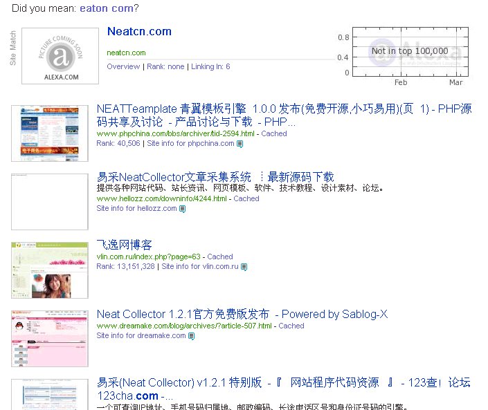 刚才把域名往alexa里面输入了一下,发现neatcn.com还是在全球没有排名,只是下面关联的网站里,却有好多以往的东西。