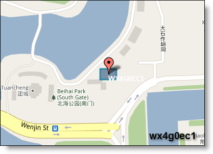 其次,geohash表示的并不是一个点,而是一个矩形区域。比如编码wx4g0ec19,它表示的是一个矩形区域。 使用者可以发布地址编码,既能表明自己位于北海公园附近,又不至于暴露自己的精确坐标,有助于隐私保护。