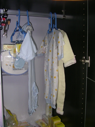 虽然baby还没有出来,但媳妇却挺当成一回事,买了点衣服和奶瓶,用我的话来说,是放在橱里长灰了,可是,不能打消她的积极性啊。最后拿上了300W的数码相机,用着并不娴熟的技术拍了几张照片,放到网上以贻大方。